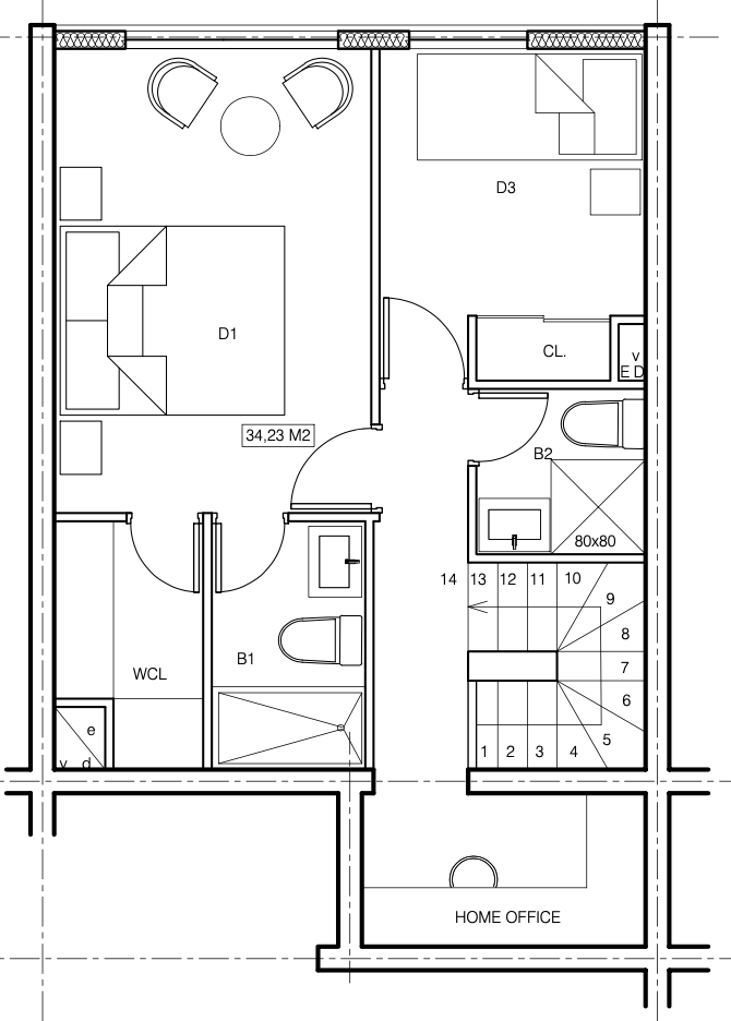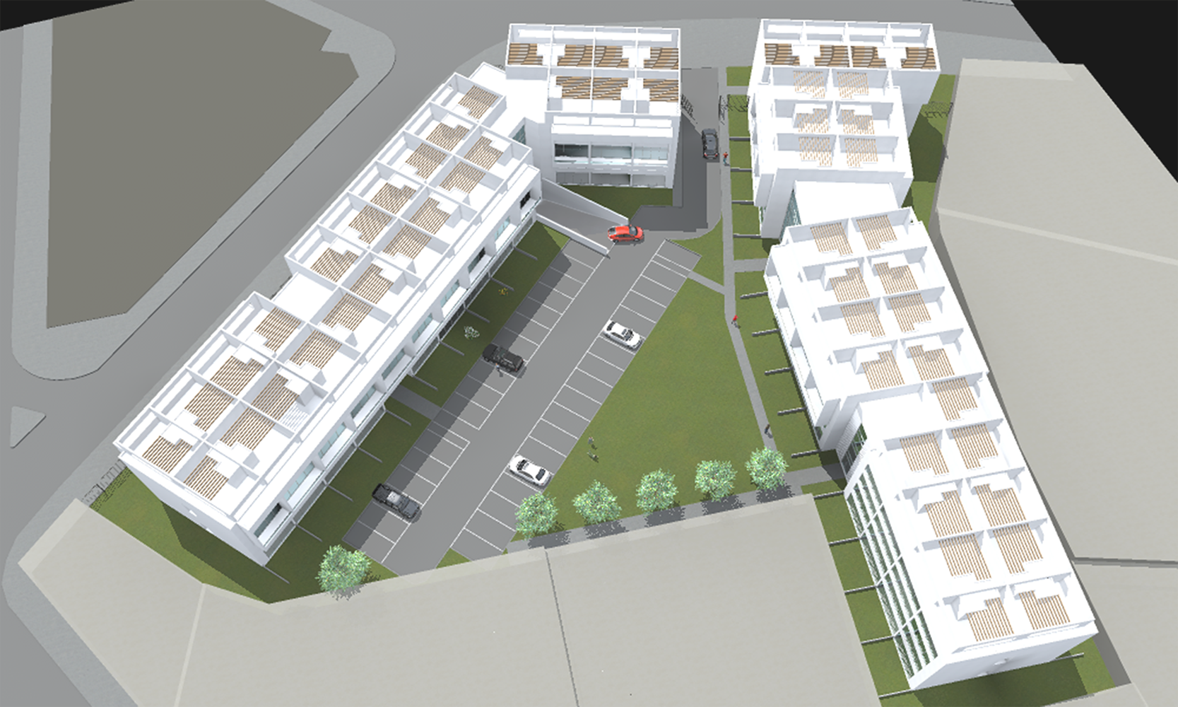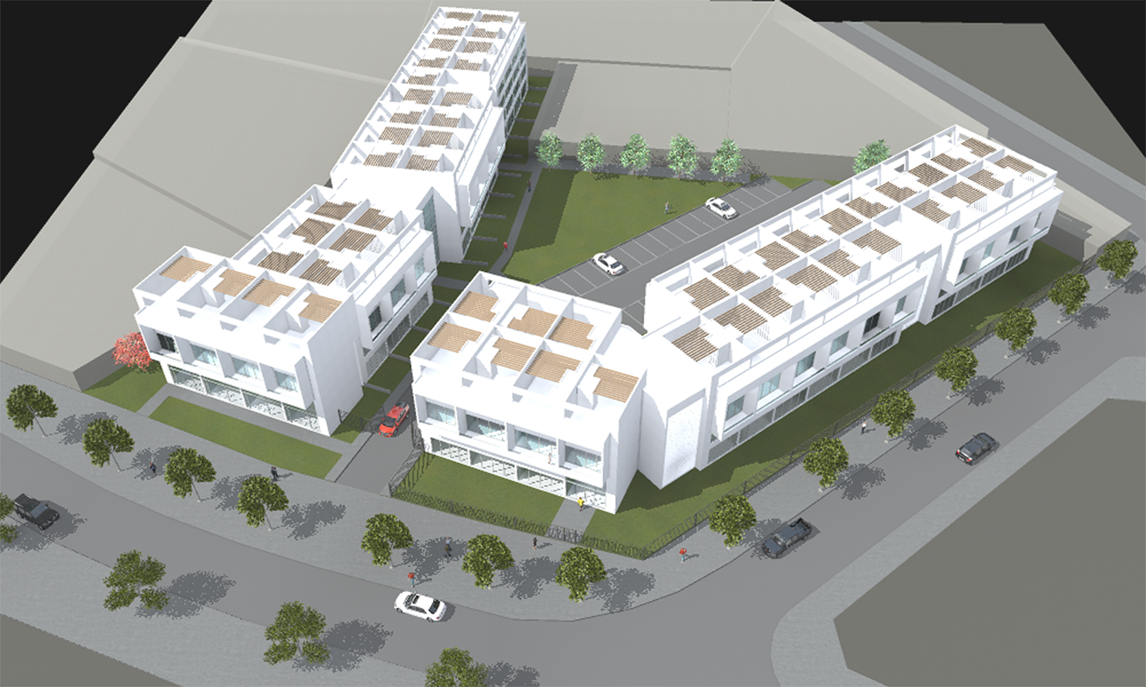 Conjunto de 102 departamentos-casa tipo dúplex en edificios de 4 pisos, cuya diferenciación con respecto al mercado es que cada unidad es de 2 pisos de altura. Los departamentos del primer piso cuentan con patio privado y los pisos superiores cuentan con gran azotea privada del tamaño del departamento. Esto permite la realización de actividades al aire libre en la propia casa.