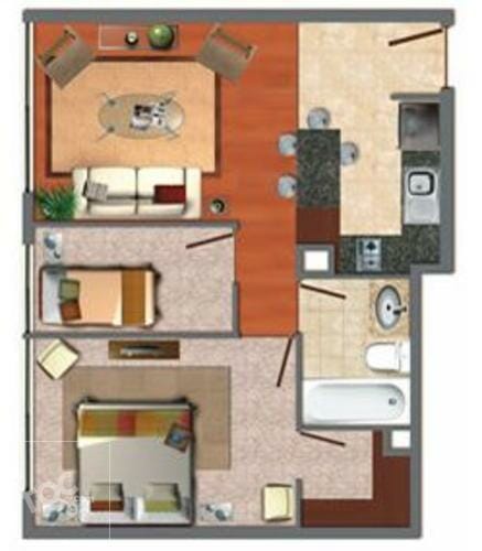 Edificio de 7 pisos, 2 subterráneo, y 46 departamentos de 1, 2 y 3 dormitorios.