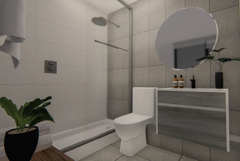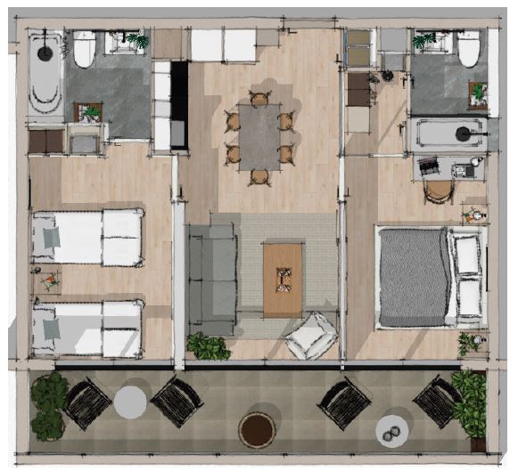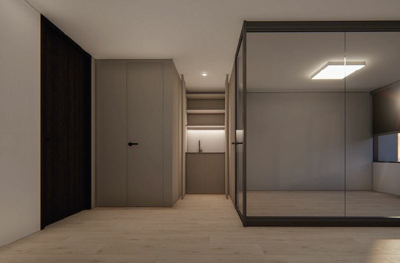 •  64 Departamentos Mariposa (2D-2B) de 67 m2 promedio, optimizados para el negocio de arriendo.