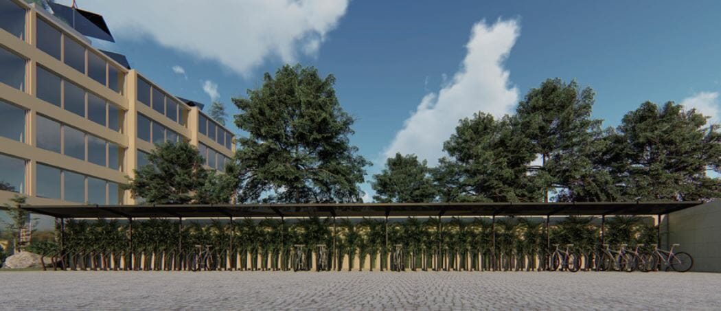 Proyecto Mixto con accesos independientes para departamentos, oficinas y placa comercial.